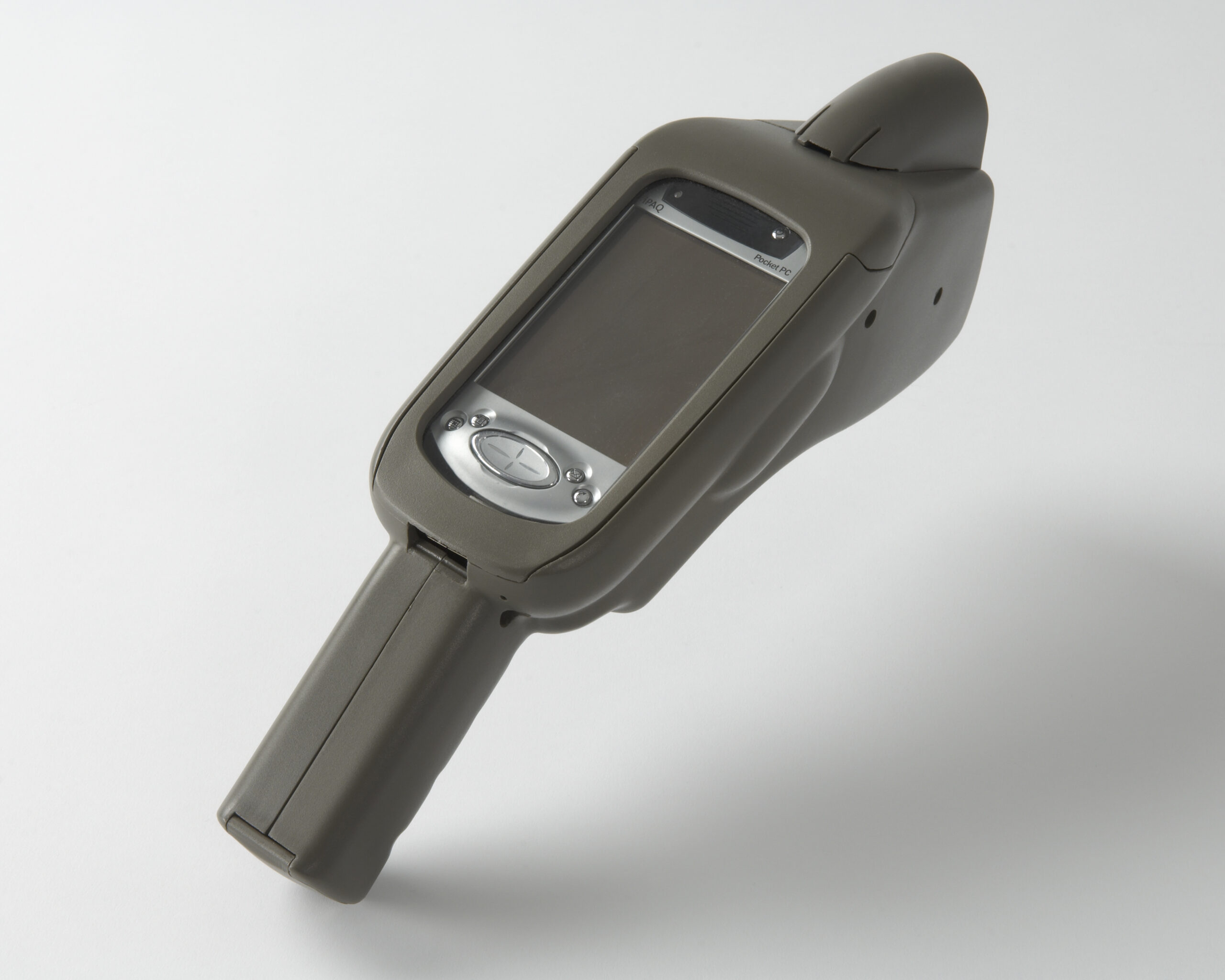 Identix Corporation approached Solid about designing this new hand held product for them. They wanted to integrate a Compaq IPac with 1.8KHz processor, removable rechargeable Sony Battery Pack and a finger printer reader previously designed by Solid into one product. This product would need to be stylish, low weight, and be rugged enough for police work support. The product also need to be able to capture a digital photo, video, audio and swipe a driver’s license.