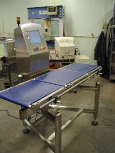 The VersaWeigh check weigher product was ready for production in three frame sizes supporting a range of conveyor widths and weight capacities. Frames support the integration of in-line metal detectors and eject mechanisms. And, it's a good looking machine!